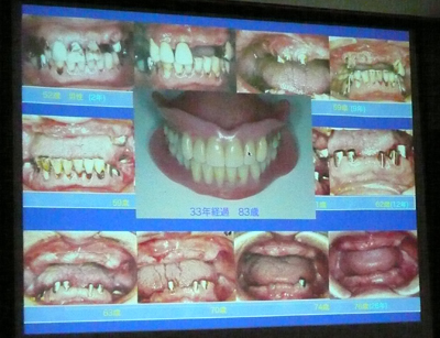 上の写真は、1人の患者様の欠損歯列が33年かけて進行して行った模様です。