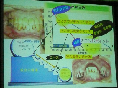 宮地先生は、沢山の長期経過症例から、歯の欠損がどのような経過をたどって進行していくのかを「咬合三角」という表で分かりやすく示す方法を発明した、高名な先生です。